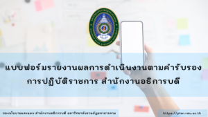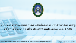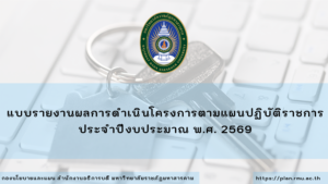 แผนปฏิบัติราชการ สำนักงานอธิการบดี (สนอ.) มหาวิทยาลัยราชภัฏมหาสารคาม แผนปฏิบัติราชการ สำนักงานอธิการบดี (สนอ.) มหาวิทยาลัยราชภัฏมหาสารคาม แผนปฏิบัติราชการ สนอ. แผนปฏิบัติราชการ ระยะ 5 ปี (พ.ศ.2566-2570) สำนักงานอธิการบดี มหาวิทยาลัยราชภัฏมหาสารคาม กลุ่มงานสารสนเทศ กองนโยบายและแผน 6 กรกฎาคม 2023 อ่านเพิ่มเติม แผนปฏิบัติราชการ ประจำปี 2563 สำนักงานอธิการบดี กลุ่มงานสารสนเทศ กองนโยบายและแผน 20 เมษายน 2021 อ่านเพิ่มเติม แผนปฏิบัติราชการ ประจำปี 2562 สำนักงานอธิการบดี กลุ่มงานสารสนเทศ กองนโยบายและแผน 19 เมษายน 2021 อ่านเพิ่มเติม แผนปฏิบัติราชการ ประจำปี 2561 สำนักงานอธิการบดี กลุ่มงานสารสนเทศ กองนโยบายและแผน 18 เมษายน 2021 อ่านเพิ่มเติม แผนปฏิบัติราชการ ประจำปี 2560 สำนักงานอธิการบดี กลุ่มงานสารสนเทศ กองนโยบายและแผน 14 เมษายน 2021 อ่านเพิ่มเติม 12 12 รายงานการติดตามและประเมินผล สนอ. รายงานติดตามและประเมินผล แผนปฏิบัติราชการ ประจำปีงบประมาณ พ.ศ. 2568 สำนักงานอธิการบดี รอบ 12 เดือน (1 ตุลาคม พ.ศ.2567 – 30 กันยายน พ.ศ.2568) กลุ่มงานสารสนเทศ (พีรดนย์ คำพิลา) 19 กุมภาพันธ์ 2026 อ่านเพิ่มเติม รายงานติดตามและประเมินผล แผนปฏิบัติราชการ ประจำปีงบประมาณ พ.ศ. 2568 สำนักงานอธิการบดี รอบ 9 เดือน (1 ตุลาคม พ.ศ.2567 – 30 มิถุนายน พ.ศ.2568) กลุ่มงานสารสนเทศ (พีรดนย์ คำพิลา) 4 กันยายน 2025 อ่านเพิ่มเติม รายงานติดตามและประเมินผล แผนปฏิบัติราชการ ประจำปีงบประมาณ พ.ศ. 2568 สำนักงานอธิการบดี รอบ 6 เดือน (1 ตุลาคม พ.ศ.2567 – 31 มีนาคม พ.ศ.2568) กลุ่มงานสารสนเทศ (เจษฎา กลิ่นกล้า) 20 สิงหาคม 2025 อ่านเพิ่มเติม รายงานติดตามและประเมินผล แผนปฏิบัติราชการ ประจำปีงบประมาณ พ.ศ. 2567 สำนักงานอธิการบดี รอบ 12 เดือน (1 ตุลาคม พ.ศ.2566 – 30 กันยายน พ.ศ.2567) กลุ่มงานสารสนเทศ กองนโยบายและแผน 17 มกราคม 2025 อ่านเพิ่มเติม รายงานติดตามและประเมินผล แผนปฏิบัติราชการ ระยะ 5 ปี (พ.ศ.2566-2570) สำนักงานอธิการบดี ประจำปีงบประมาณ พ.ศ. 2566 กลุ่มงานสารสนเทศ กองนโยบายและแผน 3 มกราคม 2024 อ่านเพิ่มเติม รายงานติดตามและประเมินผล แผนปฏิบัติราชการ ประจำปีงบประมาณ พ.ศ. 2566 สำนักงานอธิการบดี รอบ 12 เดือน (1 ตุลาคม พ.ศ.2565 – 30 กันยายน พ.ศ.2566) กลุ่มงานสารสนเทศ กองนโยบายและแผน 16 ตุลาคม 2023 อ่านเพิ่มเติม 12 12 แบบฟอร์ม สนอ. แบบรายงานผลการดำเนินโครงการตามแผนปฏิบัติราชการ ประจำปีงบประมาณ พ.ศ. 2569 กลุ่มงานสารสนเทศ (พีรดนย์ คำพิลา) 2 กุมภาพันธ์ 2026 ดูรายละเอียด แบบฟอร์ม รายงานผลการดำเนินโครงการมหาวิทยาลัยราชภัฏเพื่อการพัฒนาท้องถิ่น ประจำปีงบประมาณ พ.ศ. 2569 กลุ่มงานสารสนเทศ (พีรดนย์ คำพิลา) 22 มกราคม 2026 ดูรายละเอียด แบบฟอร์มรายงานผลการดำเนินงานตามคำรับร